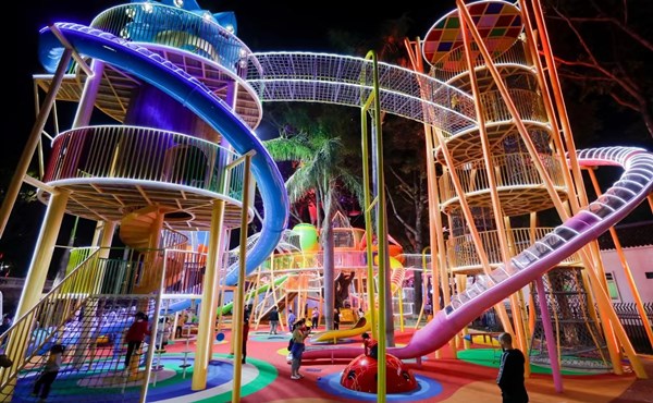 户外亲子儿童乐园一般自然风景都比较优良,若设计时场地条件受到限制,摩登6需要通过后期设计手法来营造自然的环境。如打造坡地地形,植树造林,引入溪流等。在设施规划上,要将游乐设施通过游戏形式有机地结合,力求自然,能有效的限制玩乐方式。还可以通过有效的空间规划布局,将乐园中的各个部分进行区别与联系。