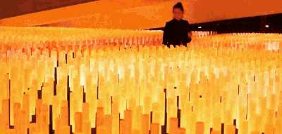 城市夜幕下滚动着金色的麦浪,高低错落,仿佛使人回到乡村田野上,不要怀疑你的眼睛,这就是借科技之手造出的一片立体像素的麦田,观众可以从两个角度获得截然不同的体验: