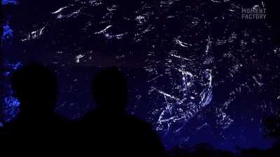 只有想不到,没有做不到,还有就是敢不敢尝试了。这次艺术创作者们,大胆的将艺术影像MAPPING到了峡谷河流之上。在峡谷河面上盛开,这些花朵与花瓣不是提前录制的影像,它们是由计算机程序实时呈现的,根据溪流数据视觉状态在不停地衍变,每一秒你所观看到的都是不一样的。