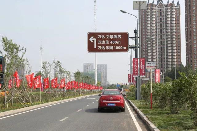 从此处开始设置远端车辆导向,一般为棕底白字的车辆导向一级标识,显示主题乐园名称及距离。